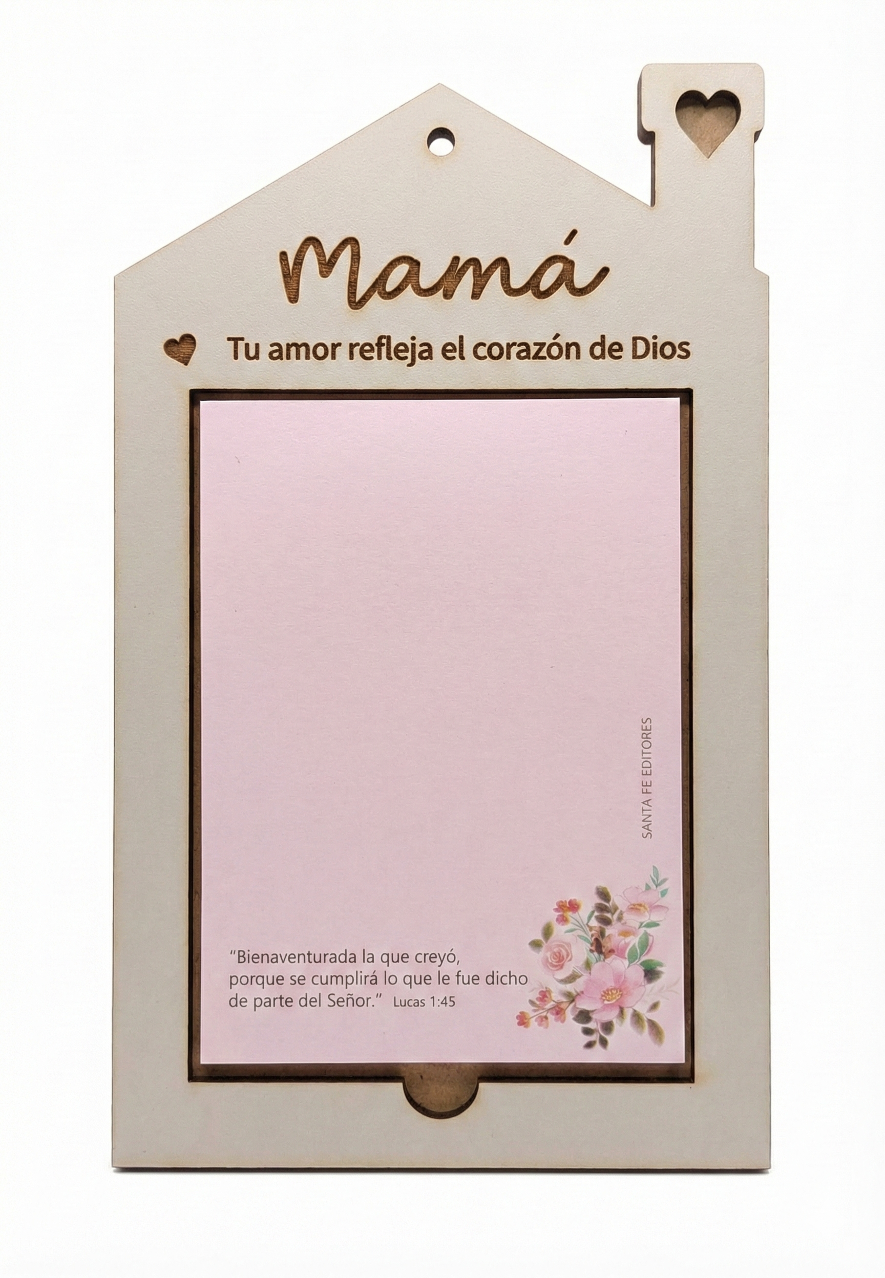 La Casita MDF Anotador – Mamá fue creada para honrar el amor incondicional de una madre, reflejando el corazón de Dios en cada detalle. Su forma de casita simboliza hogar, protección y calidez, convirtiéndola en una pieza decorativa que transmite paz y gratitud.