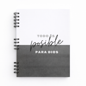 Cuaderno cristiano tamaño A4, diseñado para acompañarte en tu día a día con un mensaje de fe y esperanza. Su tapa presenta la frase “Todo es posible para Dios”, un recordatorio constante de confianza y propósito.