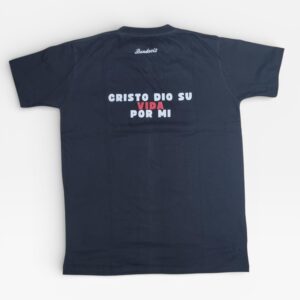 En el frente, el mensaje conecta el sacrificio de Cristo con una imagen que todos entienden: la sangre que salva, la vida que es rescatada.