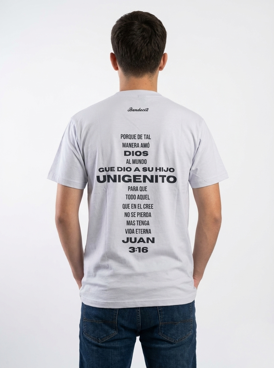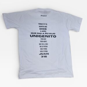 La remera “Juan 3:16” lleva el versículo que expresa el amor más grande jamás dado.